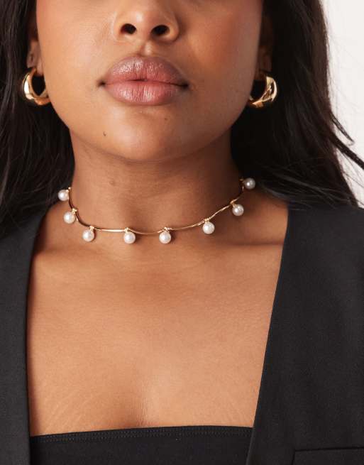 ASOS DESIGN Curve - Collier ras de cou avec motif tiret en perles fantaisie - Doré
