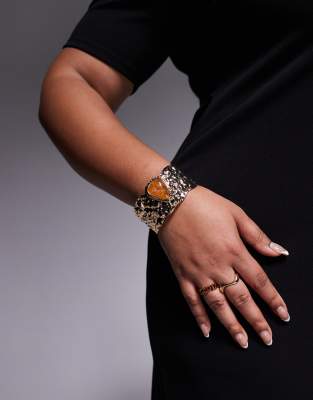 ASOS DESIGN Curve - Édition limitée - Bracelet jonc à détails texturés abstraits effet fondu - Doré