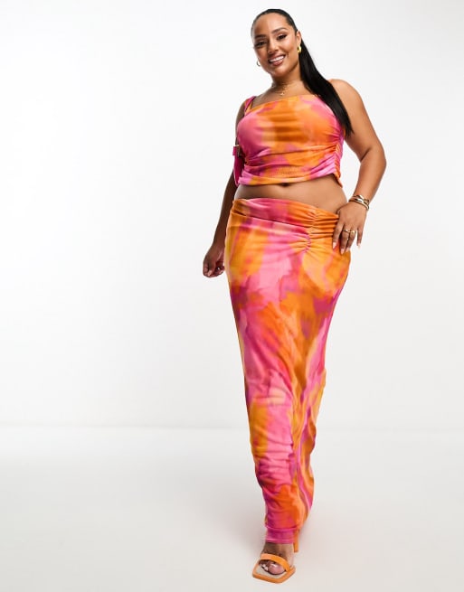 ASOS DESIGN Curve - Ensemble avec top corset sans manches et jupe longue en tulle à imprimé marbré