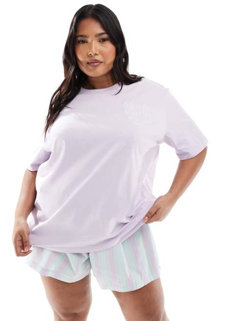 ASOS DESIGN Curve - Ensemble de pyjama avec short rayé style caleçon et t-shirt oversize - Lilas