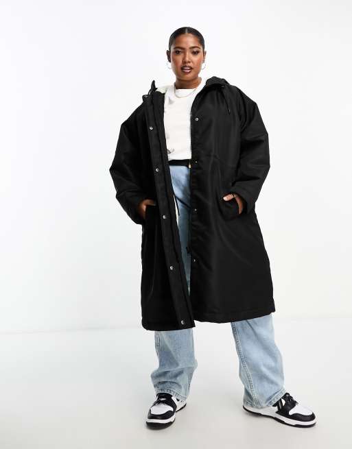 ASOS DESIGN Curve - Imperméable long oversize avec doublure imitation peau de mouton - Noir