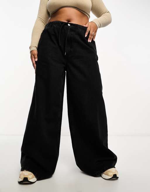 ASOS DESIGN Curve - Jean ample à enfiler - Noir délavé
