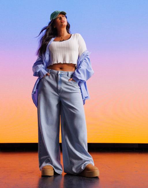 ASOS DESIGN Curve - Jean ample doux au toucher - Bleu clair