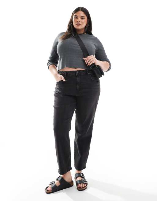 ASOS DESIGN Curve - Jean mom slim et confortable - Noir délavé