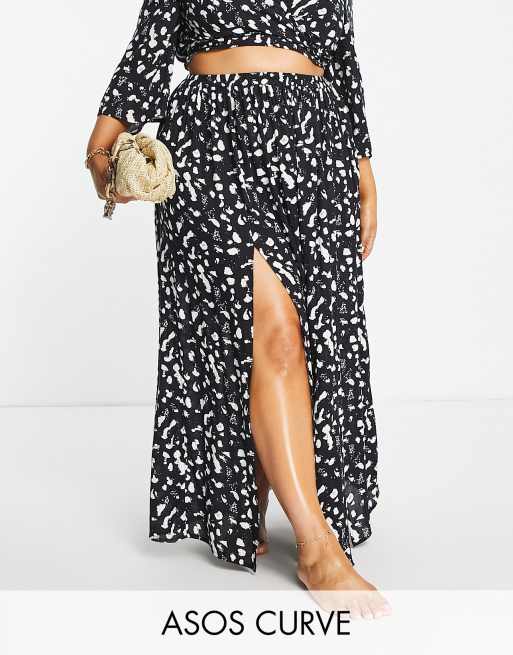 ASOS DESIGN Curve - Jupe de plage longue et froissée - Imprimé noir et blanc
