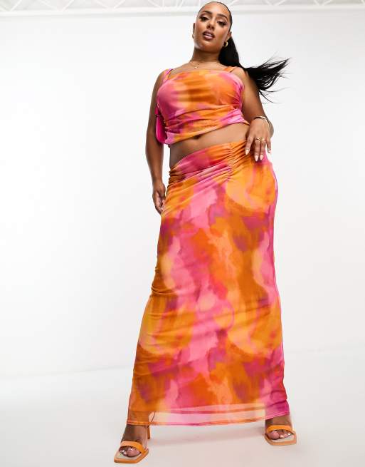 ASOS DESIGN Curve - Jupe d'ensemble longue en tulle imprimé marbré