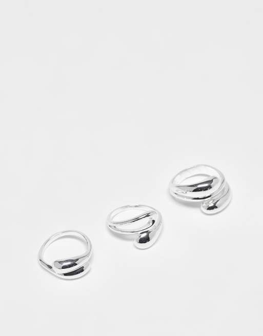 ASOS DESIGN Curve - Lot de bagues ondulées effet bombé - Argenté