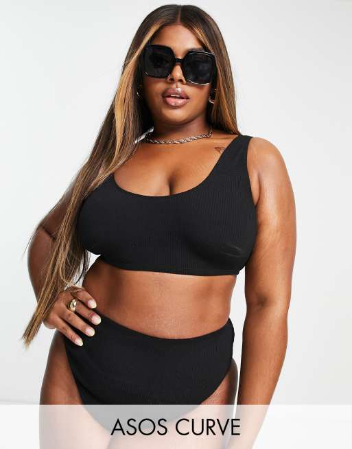 ASOS DESIGN Curve - Mix and Match - Haut de bikini court froissé à encolure dégagée - Noir