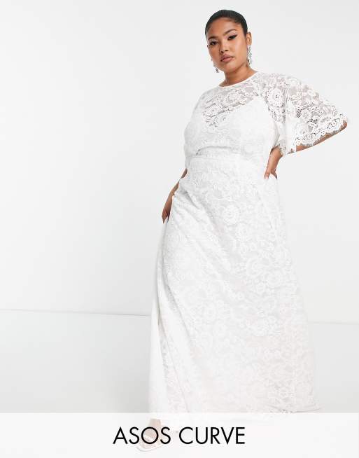 ASOS DESIGN Curve - Olivia - Robe de mariée en dentelle à manches évasées