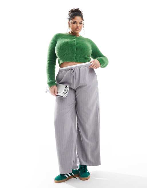 ASOS DESIGN Curve - Pantalon ajusté ample à rayures et taille contrastante - Gris
