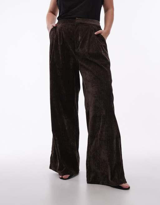 ASOS DESIGN Curve - Pantalon ample et ajusté effet velours texturé - Chocolat