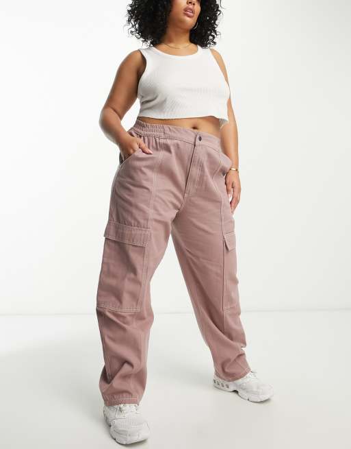 ASOS DESIGN Curve - Pantalon cargo à coutures contrastantes - Vison