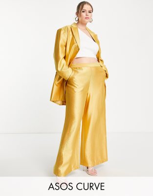 ASOS DESIGN Curve - Pantalon de tailleur large en satin pour grandes occasions - Doré