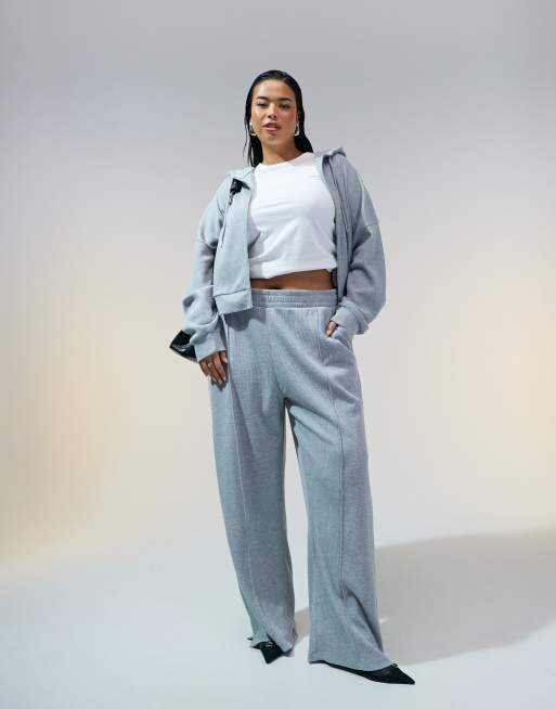 ASOS DESIGN Curve - Pantalon d'ensemble gaufré - Gris chiné