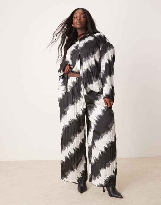 ASOS DESIGN Curve - Pantalon d'ensemble plissé ample à imprimé - Noir et blanc