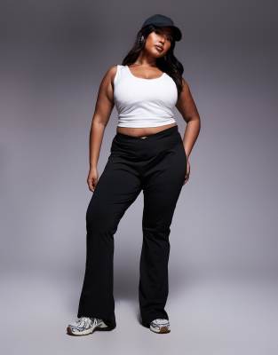 ASOS DESIGN Curve - Pantalon évasé effet sculptant avec taille haute croisée sur l'avant - Noir