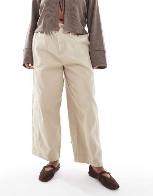 ASOS DESIGN Curve - Pantalon large à enfiler en tissu lavé - Taupe