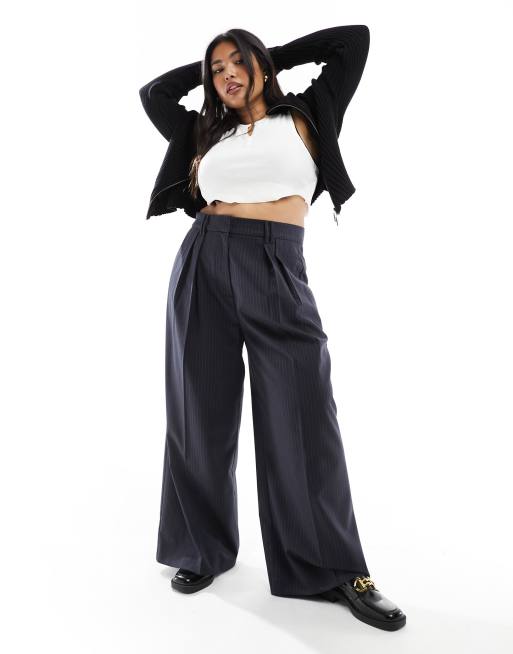 ASOS DESIGN Curve - Pantalon large d'ensemble à fines rayures - Bleu marine