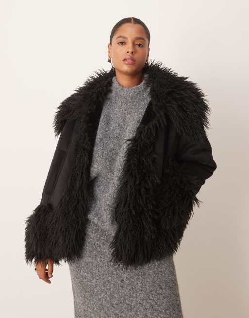 ASOS DESIGN Curve - Penny Lane - Manteau avec bordures en fausse fourrure - Noir