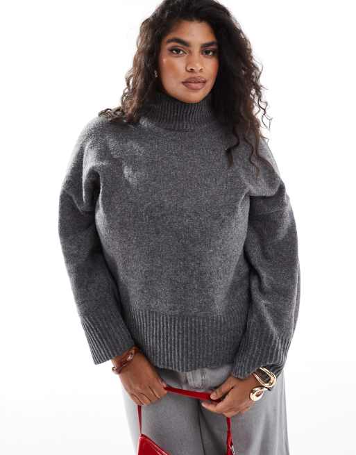 ASOS DESIGN Curve - Pull en maille à col montant et revers - Anthracite