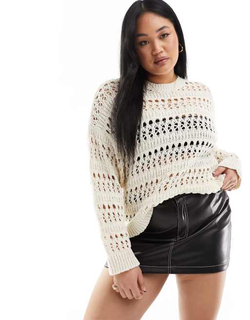 ASOS DESIGN Curve - Pull en maille texturée ajourée - Crème