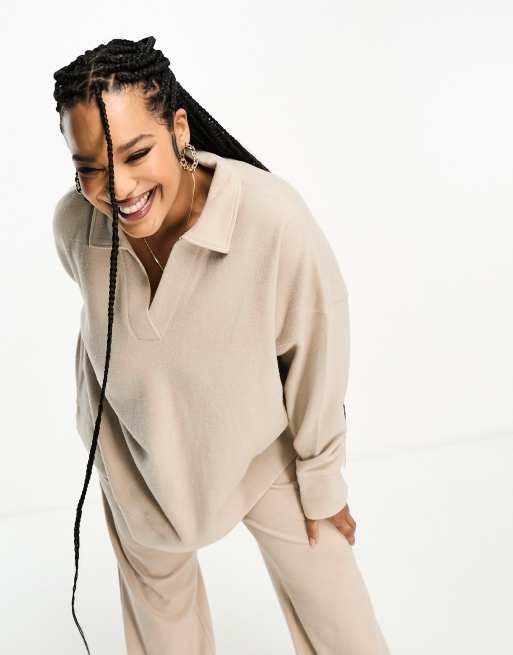 ASOS DESIGN Curve - Pull long d'ensemble ultra-doux à col polo - Crème chaud