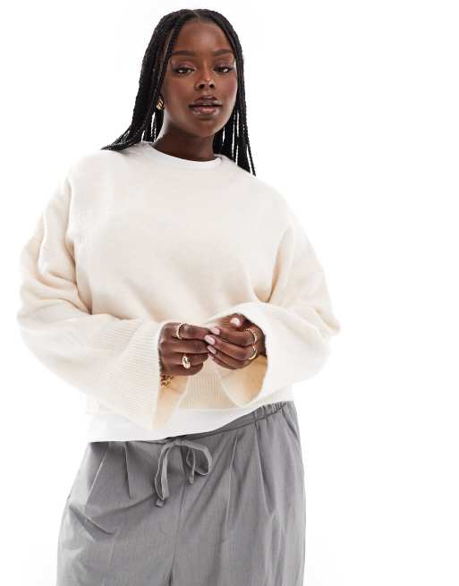 ASOS DESIGN Curve - Pull ras de cou coupe carrée à poignets larges - Crème