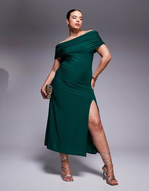 ASOS DESIGN Curve - Robe bandeau longue avec fente - Vert bouteille