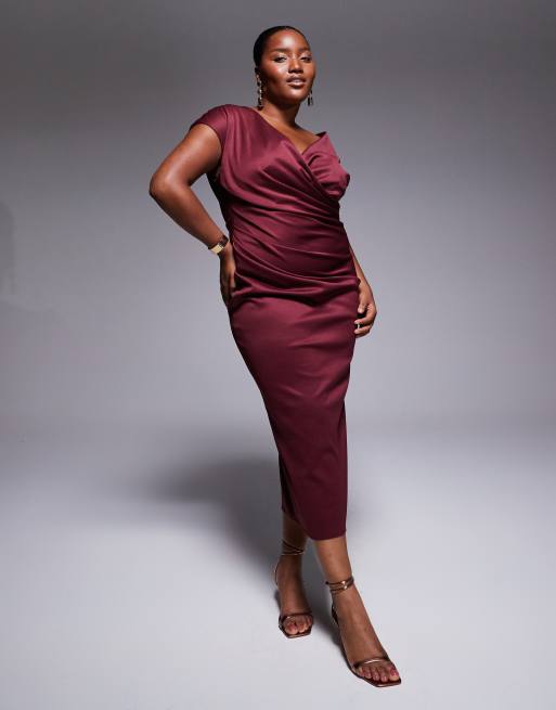 ASOS DESIGN Curve - Robe cache-coeur mi-longue structurée et drapée à mancherons - Baie foncé