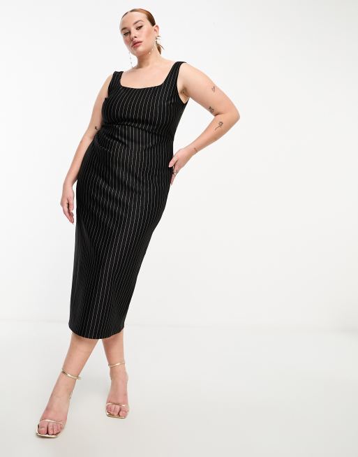 ASOS DESIGN Curve - Robe chasuble mi-longue à fines rayures