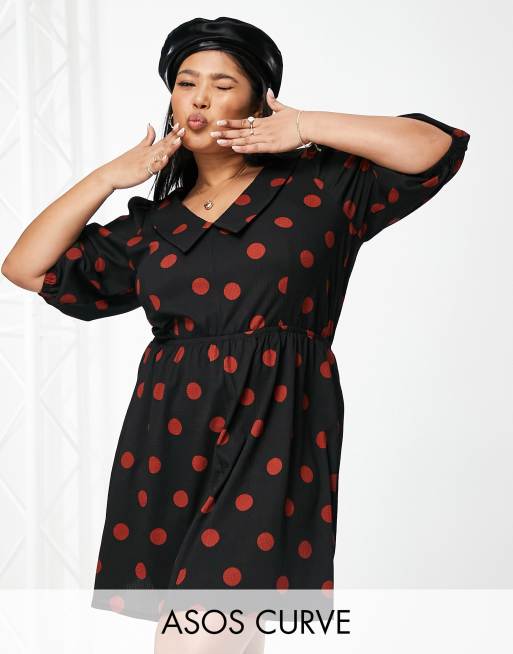 ASOS DESIGN Curve - Robe chemise courte en tissu stretch à pois - Noir