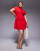 ASOS DESIGN Curve - Robe courte à col montant en bengaline fendue - Rouge