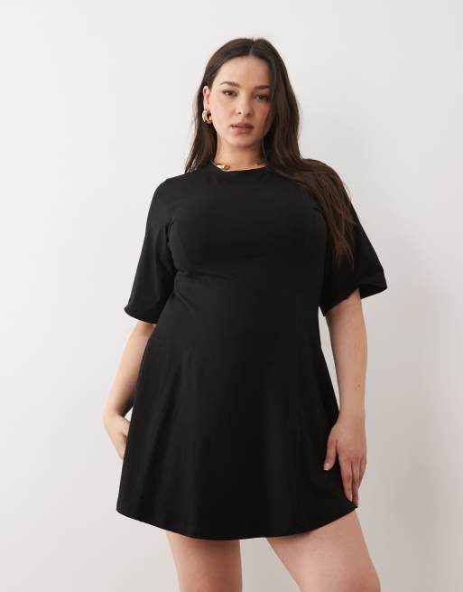 ASOS DESIGN Curve - Robe courte cintrée à surpiqûres - Noir