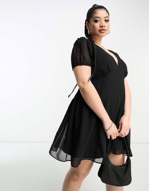 ASOS DESIGN Curve - Robe courte en mousseline à manches courtes et col V - Noir
