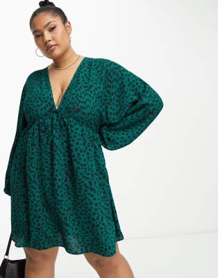 ASOS DESIGN Curve - Robe courte fluide à enfiler à imprimé animal - Vert