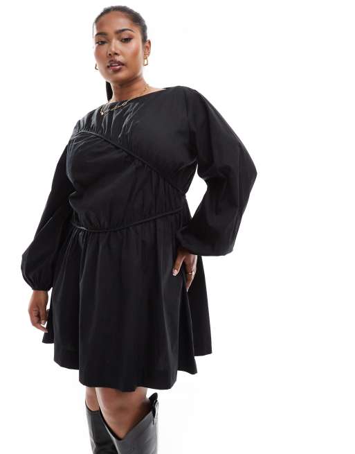 ASOS DESIGN Curve - Robe courte froncée à coutures asymétriques - Noir