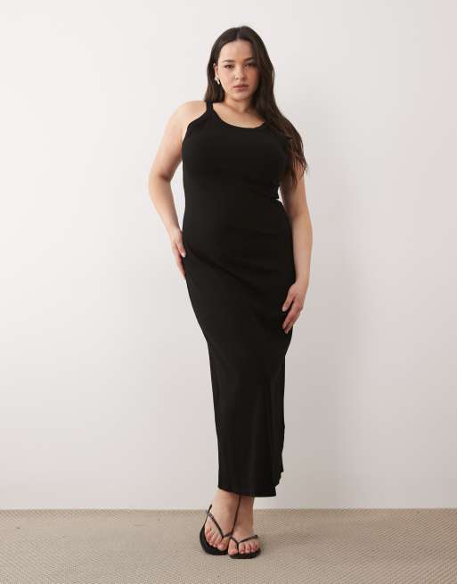 ASOS DESIGN Curve - Robe débardeur côtelée mi-longue - Noir