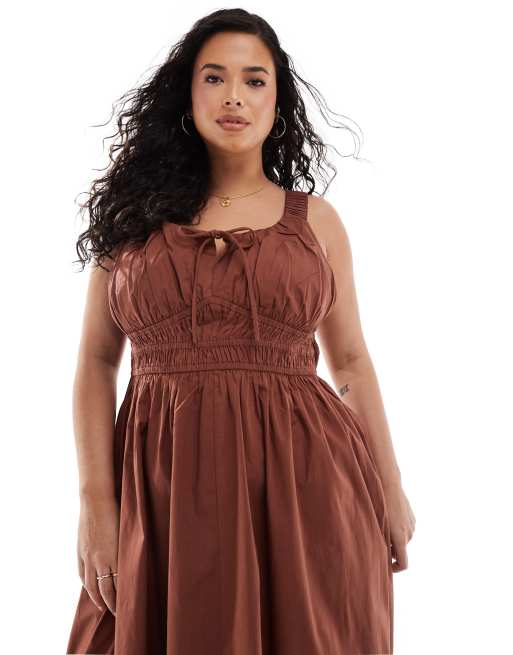 ASOS DESIGN Curve - Robe d'été mi-longue avec bretelles larges et taille cintrée - Chocolat