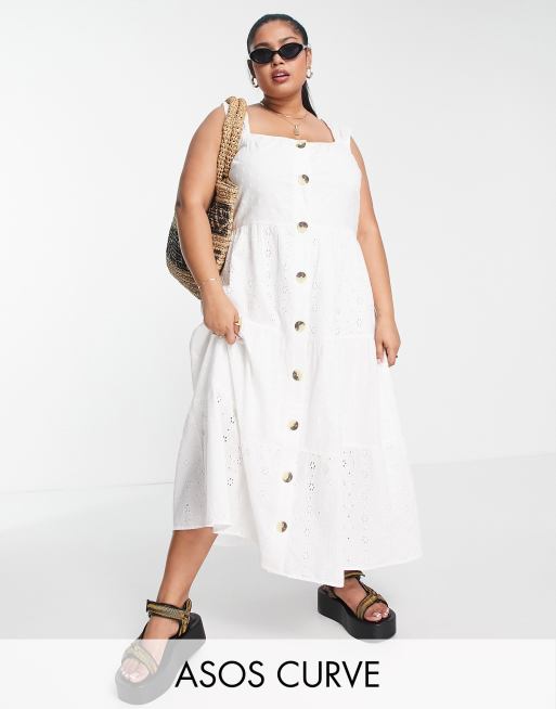 ASOS DESIGN Curve - Robe d'été mi-longue en broderie anglaise vairée - Blanc