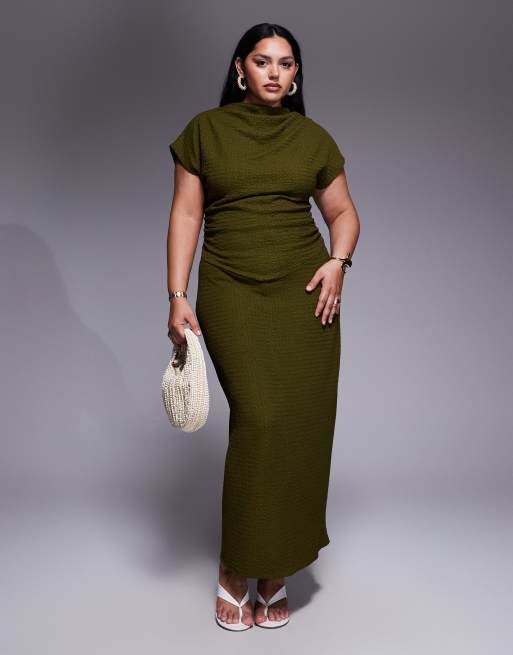 ASOS DESIGN Curve - Robe longue à épaules tombantes et volants - Kaki
