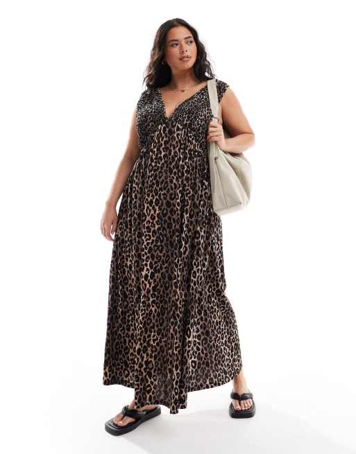 ASOS DESIGN Curve - Robe longueur mollet à col en V, ourlet évasé et imprimé léopard