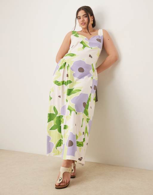 ASOS DESIGN Curve - Robe mi-longue à godets et encolure cœur - Imprimé fleurs