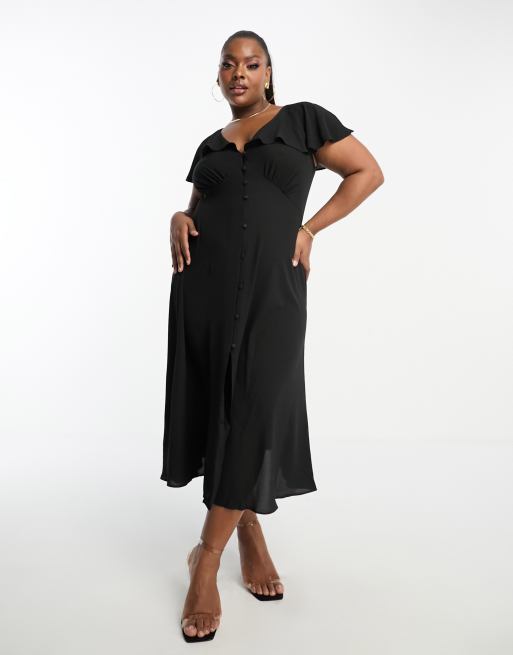 ASOS DESIGN Curve - Robe mi-longue boutonnée à manches évasées - Noir