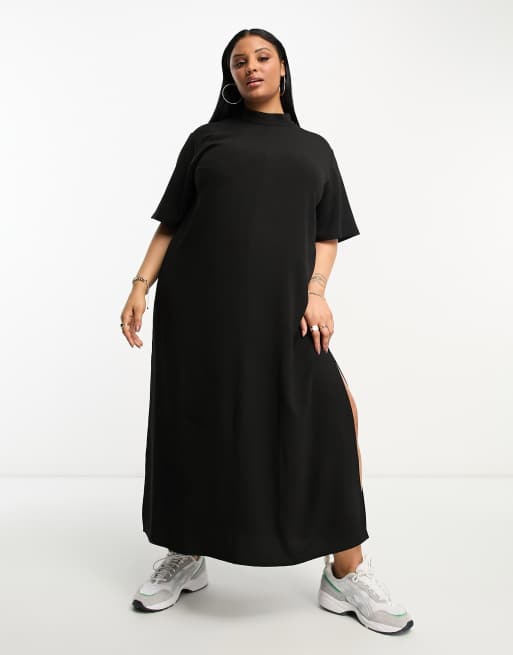 ASOS DESIGN Curve - Robe mi-longue droite oversize à col montant - Noir