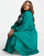 ASOS DESIGN Curve - Robe patineuse mi-longue plissée à manches longues et col montant avec broderies - Vert forêt