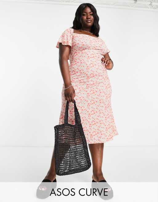 ASOS DESIGN Curve - Robe rétro mi-longue à pois et fleurs avec manches évasées