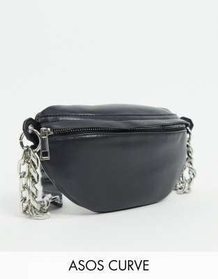 ASOS DESIGN Curve - Sac banane en PU avec chaîne épaisse - Noir