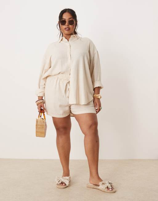 ASOS DESIGN Curve - Short d'ensemble en lin à enfiler - Taupe