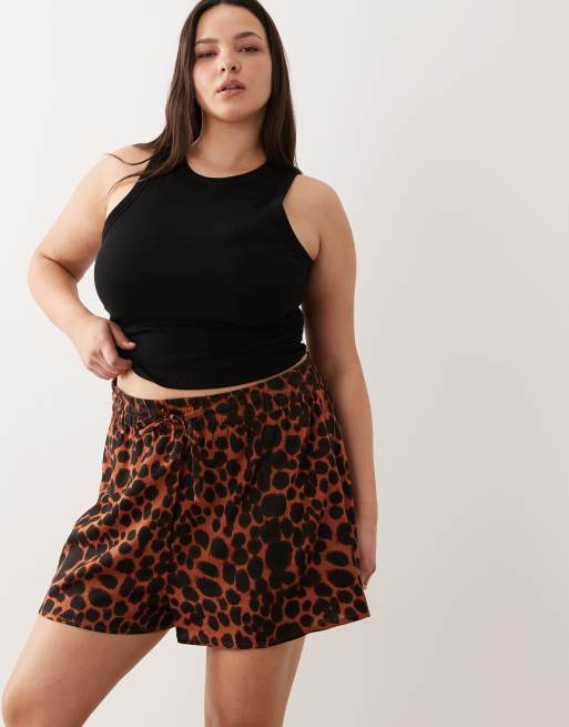 ASOS DESIGN Curve - Short d'ensemble en lin imprimé animal