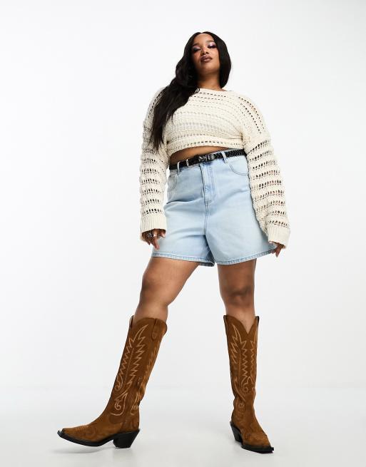 ASOS DESIGN Curve - Short en jean coupe dad - Bleu moyen délavé